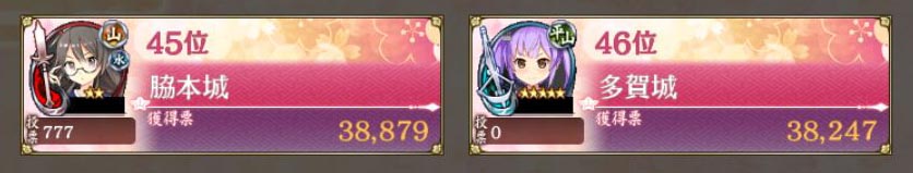 わたしがログボ分くらいしか投票しなかったら脇本城46位だったんじゃん。